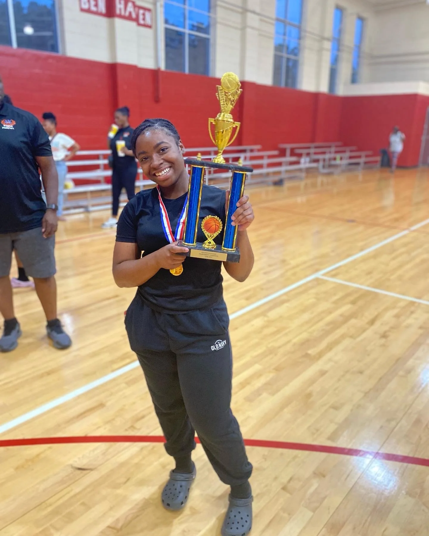 A straight-A 7th grader at Sanlee Middle School, she competed in cross country, volleyball, and basketball (starter), volunteers with Adopt-A-Park, and enjoys singing, reading, and drawing.
